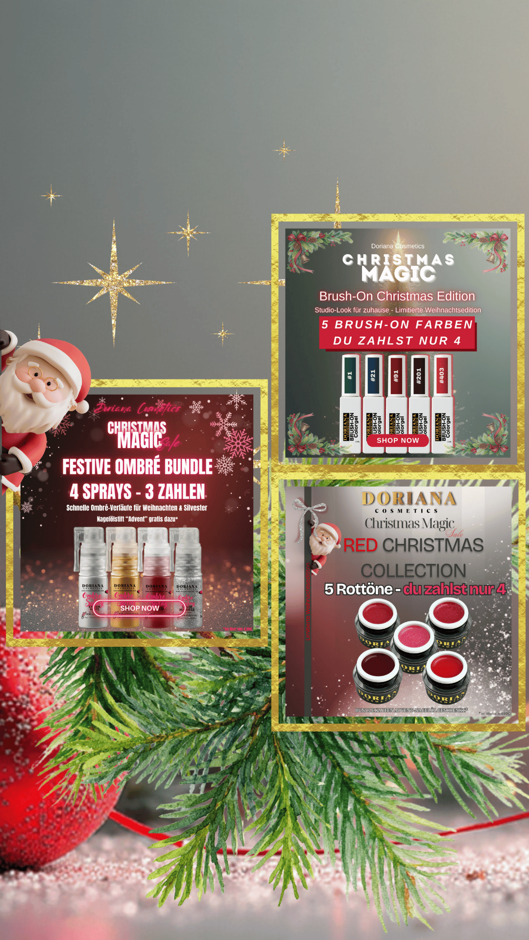 Diese limitierte Brush-On Colourgel Christmas Edition vereint fünf handverlesene Nuancen, die die schönste Zeit des Jahres perfekt einfangen – von edlem Tannengrün bis hin zu funkelndem Weihnachtsrot.