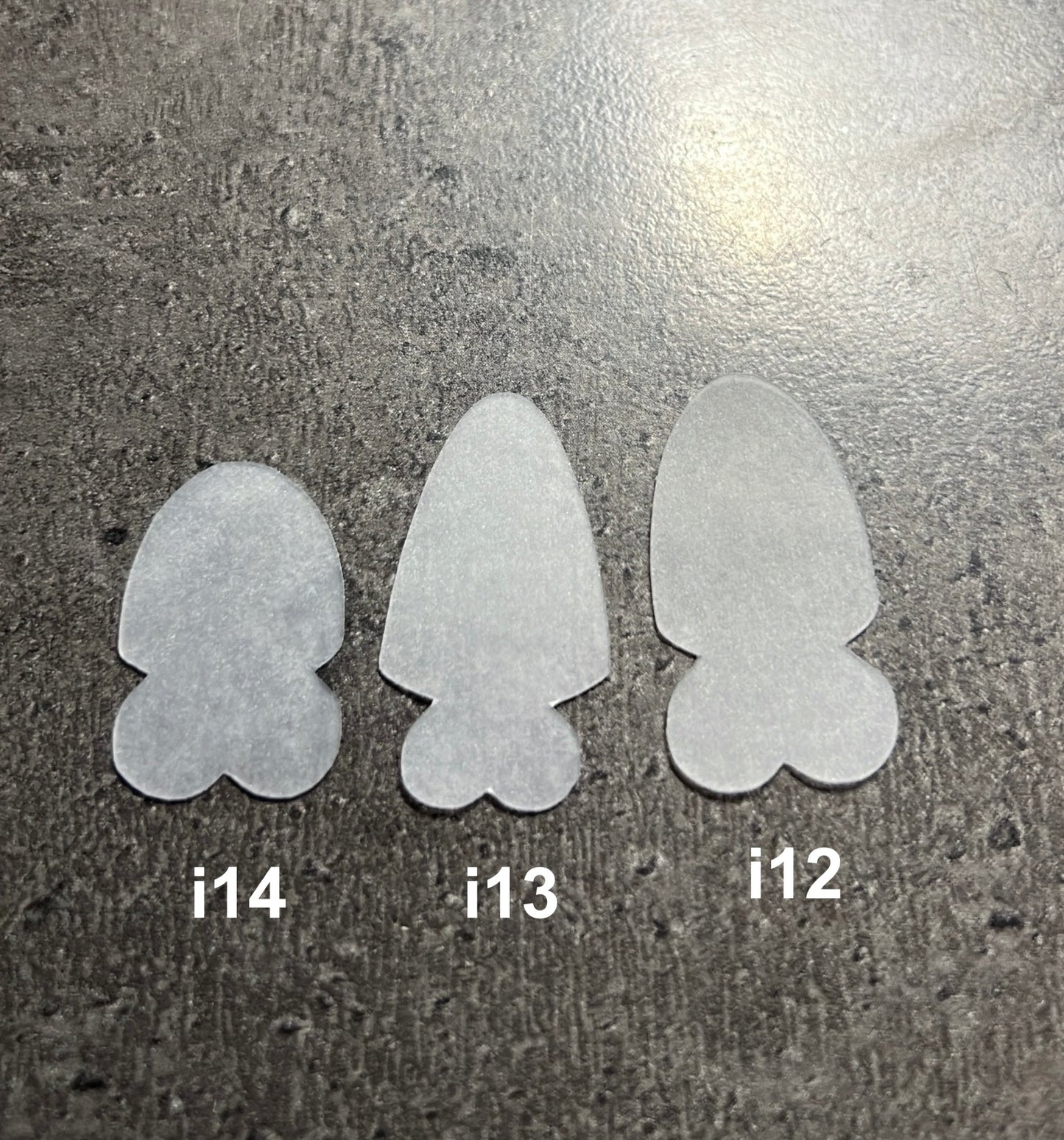 Eine Form mit jeweils 13 verschiedenen Größen, die perfekt in Dual-Tips passen. Das wieder verwendbare Silikon macht die Schablonen langlebig und einfach zu reinigen. Die Einlegeschablonen werden von Hand in Deutschland gefertigt und sind von höchster Qualität.