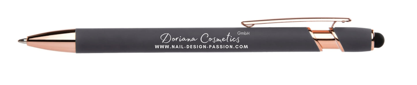 Der Stift hat in weißer Schrift das "Doriana Cosmetics GmbH www.nail-design-passion.com" Logo.